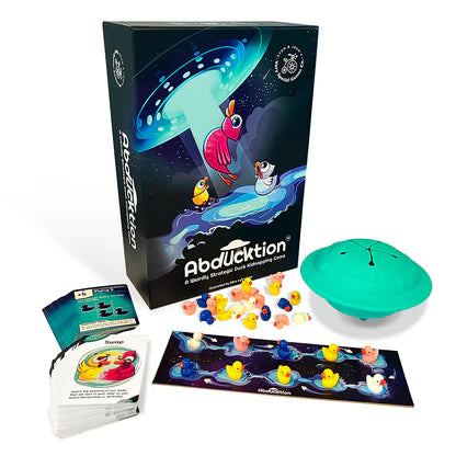Meet Abducktion, a 15-minute light strategy game for grown-ups (and smart kids) featuring ducks, a UFO, and shape-making logic!