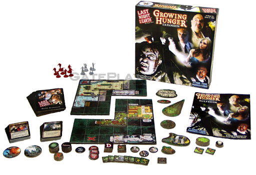 AS THE LIVING NIGHTMARE OF THE ZOMBIE ATTACK CONTINUES, THE BITTER STRUGGLE FOR SURVIVAL GROWS INCREASINGLY DEADLY! THE GROWING HUNGER EXPANSION FOR LAST NIGHT ON EARTH INTRODUCES NEW GAME MECHANICS, HEROES, BUILDINGS, AND THREE EXCITING NEW SCENARIOS TO CHALLENGE PLAYERS, AS WELL AS A TWO-PLAYER MINI-GAME.