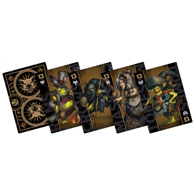 MALIFAUX uses cards, not dice, and the beautifully illustrated card pack is called a FATE DECK. This Deck is 100% plastic with the Malifaux suits. Two Fate Decks are needed to play the game, one for each player.