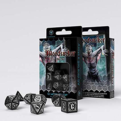 This Bloodsucker Dice set is black as the night of horror adventures, with a glass of dark coke and a big hollow voice of Game Master, that told us frightful stories about vampire`s land, full of Crows and Bloodsuckers. This set is for all old and young gamers, whether you take a role as one of the undead or you try to get rid of one!