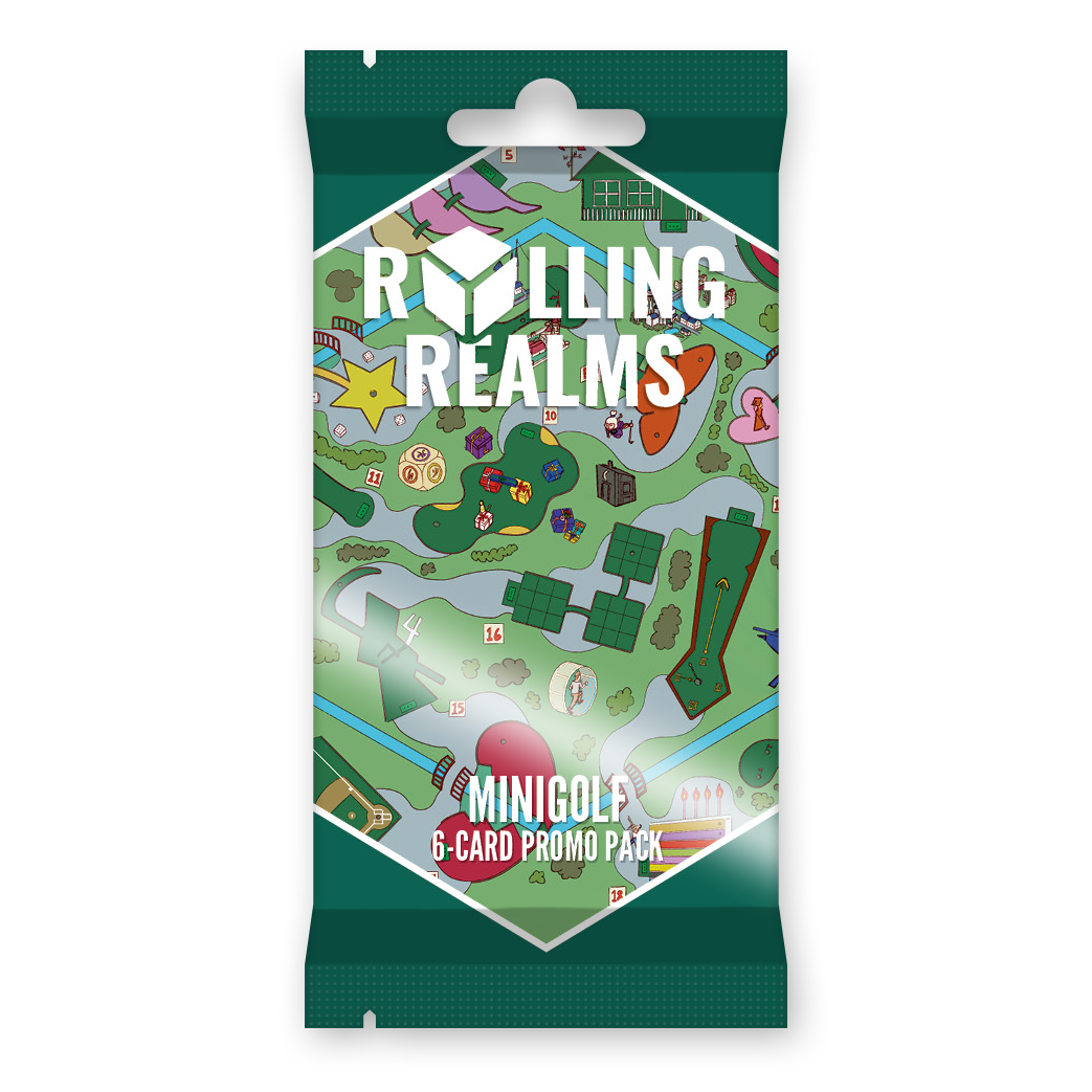 Expand your copy of Rolling Realms with this set of 6 promo cards inspired by the minigolf game inside of the original core game!