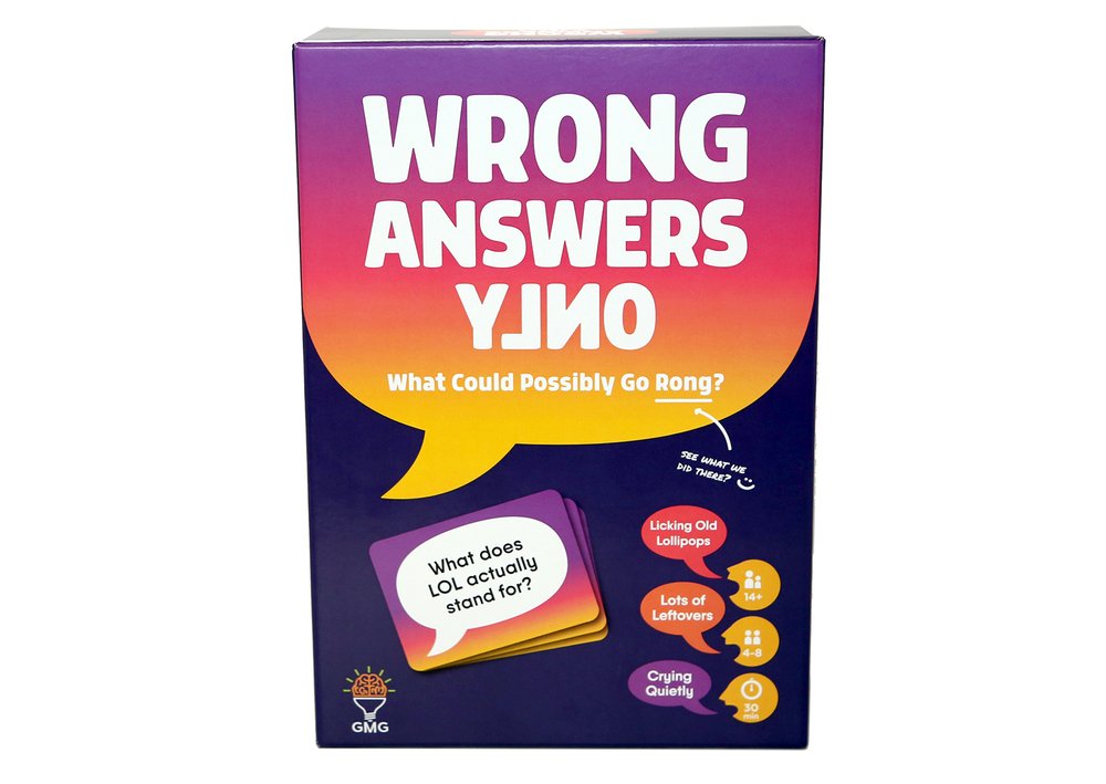 What is Superman's only weakness? Who invented Facebook? What's a burpee? We're not looking for the right answers, we want Wrong Answers Only! Introducing the game where each player's imagination and wit combine to poke fun at topics from everyday life to pop culture. Score points by guessing the question, identifying who wrote the answers and authoring the most creative response. This game is so wrong it just feels right!